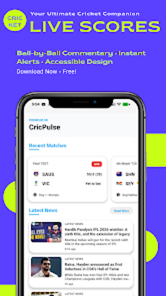 Entre suas principais funcionalidades, o CricPulse se destaca por suas notificações inteligentes que alertam os usuários sobre o início das partidas, wickets e momentos importantes do jogo. A aplicação é leve e otimizada para garantir um desempenho suave em todos os dispositivos, focando na experiência do usuário sem distrações desnecessárias. É a escolha ideal para quem deseja acompanhar o críquete de forma rápida e eficiente.